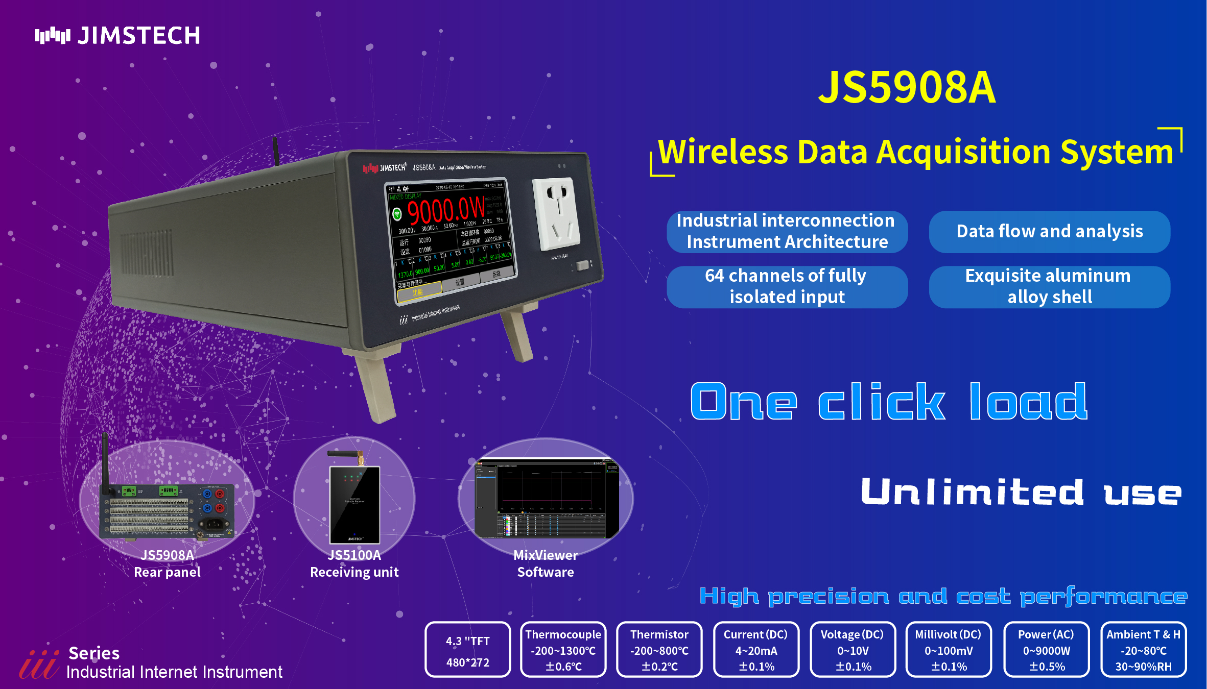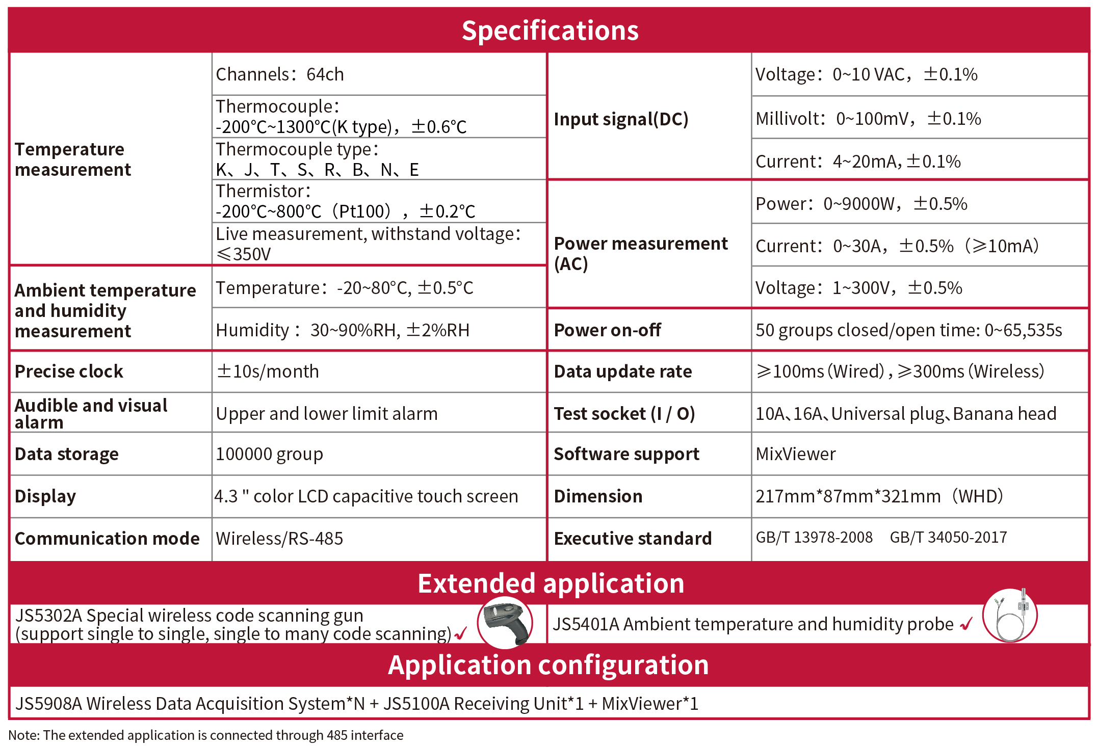 | 64 channels of fully isolated input | JS5302A Special wireless code scanning gun (support single to single, single to many code scanning) |